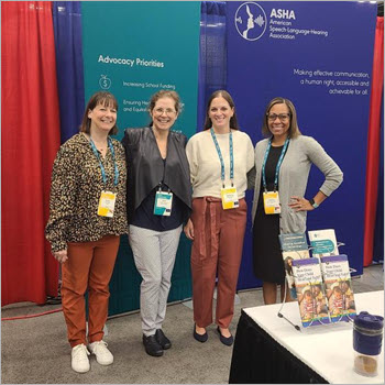 Susan Adams (ASHA), Indiana State Rep. Chris Campbell (audiologist), Indiana Speech-Language-Hearing Associaton (ISHA) President Elect Marianne Samuel, and Doanne Ward-Williams (ASHA) attended the National Conference of State Legislatures Legislative Summit in Indianapolis. It was a great opportunity for ASHA staff and ISHA to collaborate and interact with state legislators from across the country on issues impacting audiologists and SLPs.
